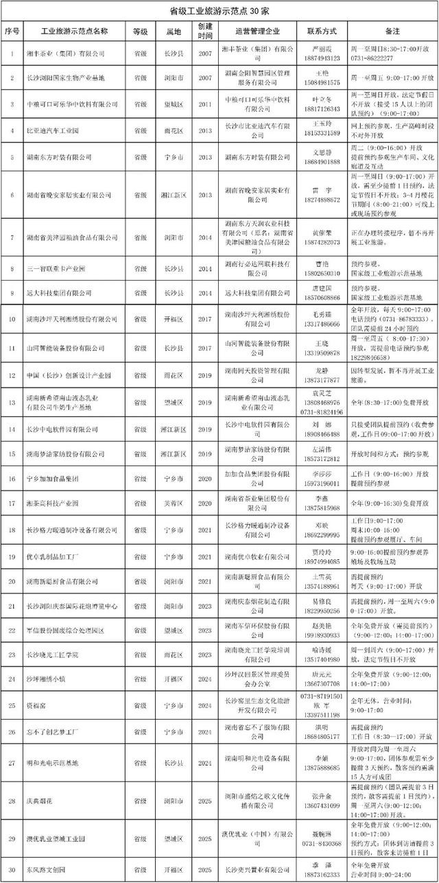 近年来,长沙持续推动工业与文旅深度融合,目前已形成涵盖国家级、省级、市级的多层次工业旅游示范体系。此次名单的集中发布,旨在为市民游客提供更便捷的出行参考,进一步激活工业旅游消费潜力。