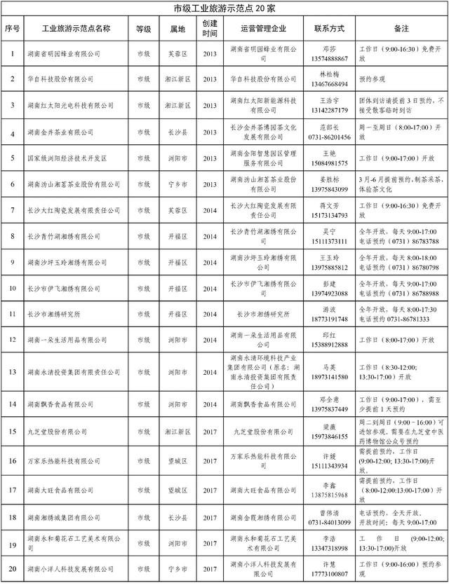 附:长沙市工业旅游示范单位名单